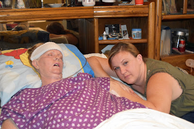 Every one of Mom's caregivers paid her a visit-both past and present. By Monday, we had relieved all caregivers of their duty. Yet, they still came to visit and one came almost every single day, staying throughout most of the day and continuing to care for her throughout the process. Some of her volunteer caregivers (who were "relieved" over a year ago, when Mom was transitioned into diapers) also came to visit. They all formed very sweet relationships with Mom throughout their time of caring for her and they grew to love Mom very much. (I don't know what happened to the picture of her caregiver, Linda, but she was there too. Maybe we forgot to get a picture?)